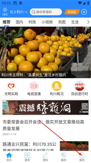 1、打开云上利川APP,点击底部我的,进入个人页面。