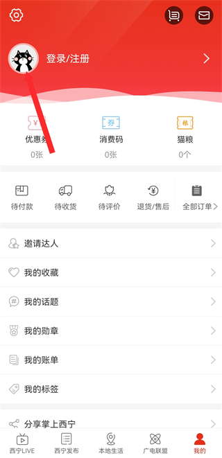1、打开掌上西宁APP,点击右下角我的,进入个人页面。