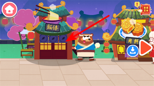 2、在游戏场景中,点击麵條店铺,进入面条制作环节。