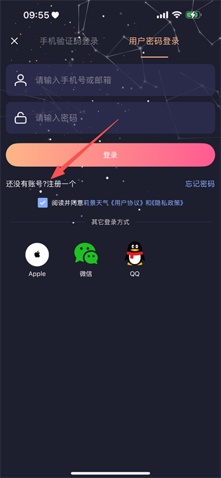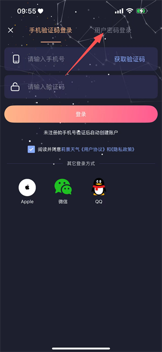 2、在登录页面,点击用户密码登录,切换到用户密码登录界面。