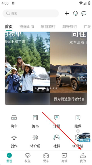 1、打开捷途汽车APP,点击底部我的,进入个人页面。