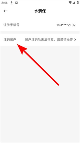 4、在水滴保注销账户页面,点击注销账户选项,按提示完成后续操作即可注销账号。