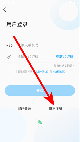 3、在用户登录页面,点击快速注册,进入注册页面。