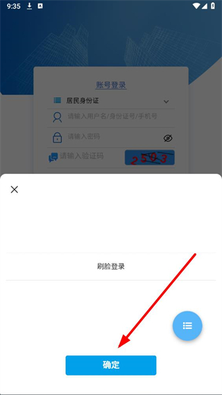 2、在登录方式选择框中,点击确定按钮,进入刷脸登录信息填写页面。