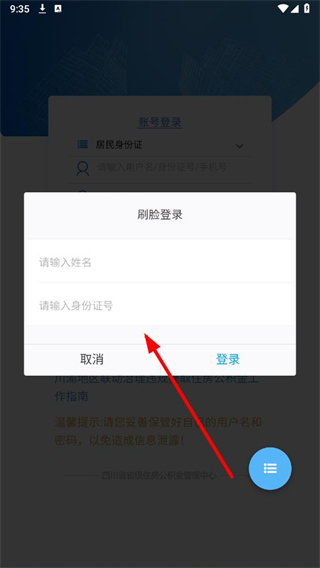3、在页面输入姓名和身份证号,点击登录按钮,按提示完成人脸验证即可登录。
