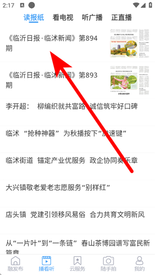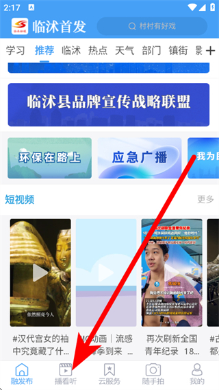 1、打开临沭融媒客户端,在首页点击底部播看听。