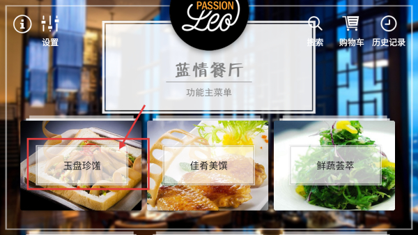 1、进入蓝情餐厅应用,点击玉盘珍馐板块,浏览该分类菜品。