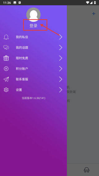 2、在菜单页面,点击登录选项,进入登录选择页面。