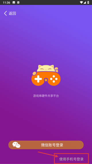 3、在登录选择页面,点击使用手机号登录,进入手机号登录页面。