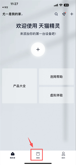 1、打开智能设备类APP,点击底部商城选项,进入商城页面。