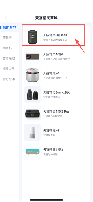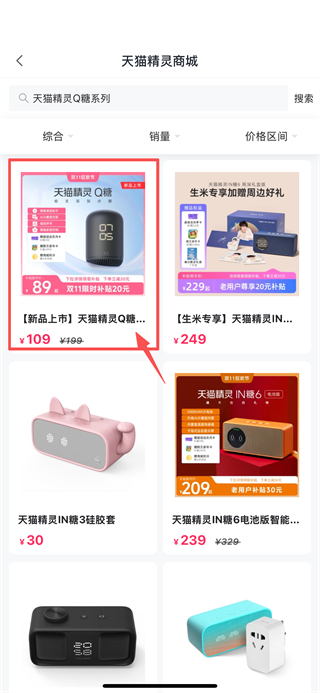 3、在商品分类页面,选择天猫精灵Q糖系列,进入该系列商品列表页面。