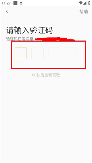 3、在输入验证码页面输入收到的验证码,完成注册登录操作。