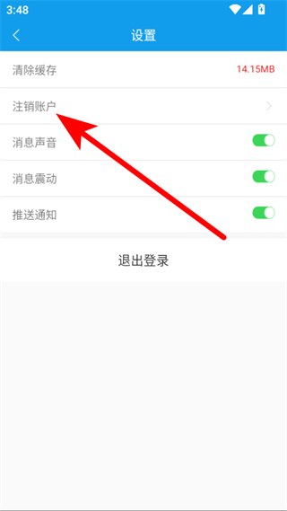 3、在设置界面里,点击注销账户选项,进入注销账户页面。