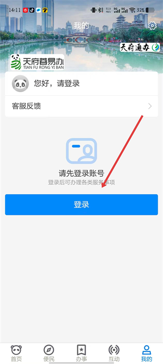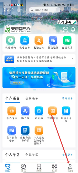 1、打开天府蓉易办APP,点击我的选项。