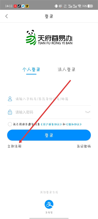 3、点击立即注册选项,进入个人注册页面。