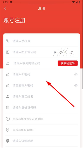 4、在注册页面,依次输入手机号、验证码、设置密码、填写个人信息信息,完成注册。