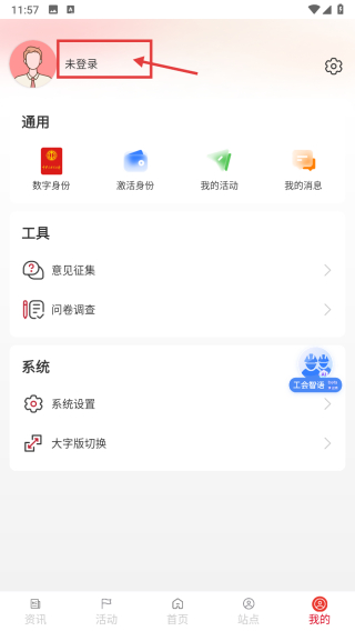 1、打开职工之家APP,点击底部我的选项进入个人页面。