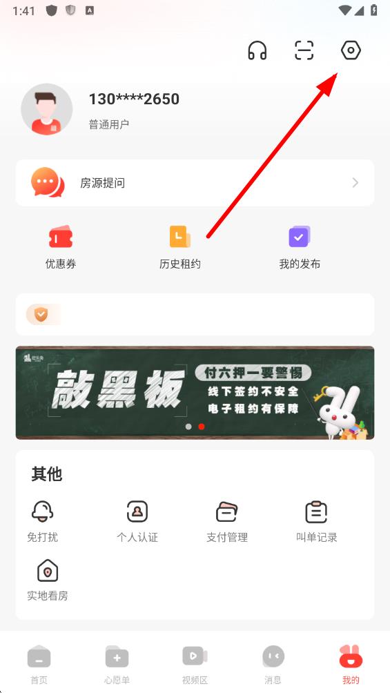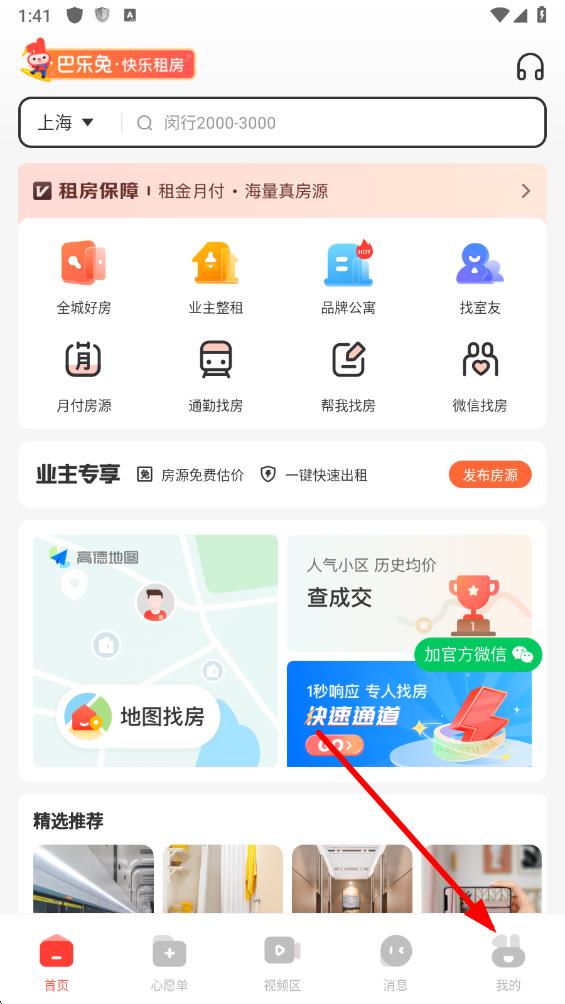 1、打开巴乐兔租房app,点击底部导航栏中的我的图标,进入个人相关界面。