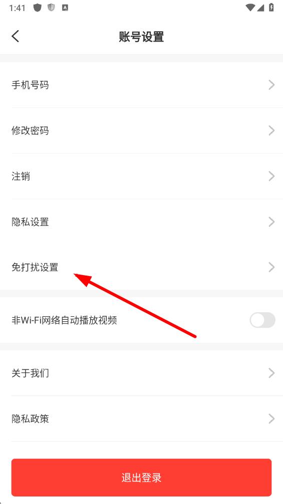 3、在账号设置页面中,找到并点击免打扰设置选项。