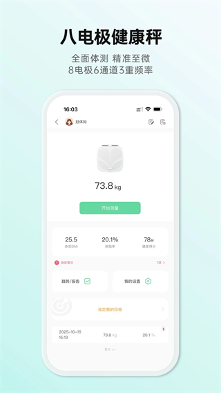 好体知体脂秤app是一款专注健康管理的智能软件,操作简单方便,用户可通过其直接测量体脂率,轻松获取核心身体指标,除基础测量功能外,APP还提供各类专业的健康医疗知识,助力用户丰富健康认知,更好地记录自身身体数据与健康状况,无论你是关注身体基础指标变化,还是想学习健康知识,这款APP都能满足需求。