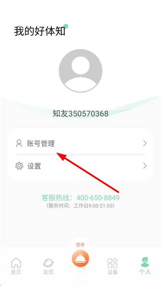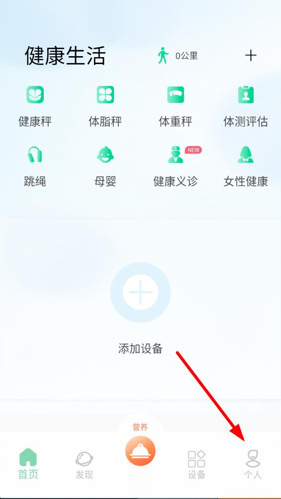 1、打开好体知体脂秤app,在首页点击底部导航栏最右侧个人图标,进入个人相关界面。