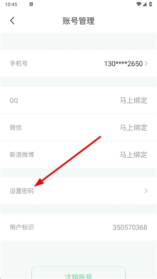3、在账号管理页面,点击设置密码,进入设置登录密码页面。