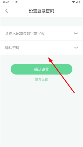 4、在页面输入密码,再次确认密码后,点击确认设置,即可完成密码的设置操作。