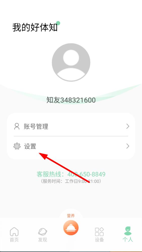 1、在好体知app首页,点击右下角个人,进入个人页面。