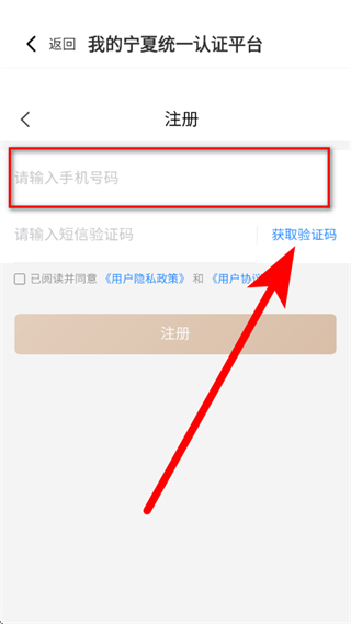 3、在我的宁夏统一认证平台页面,点击注册,进入注册页面。