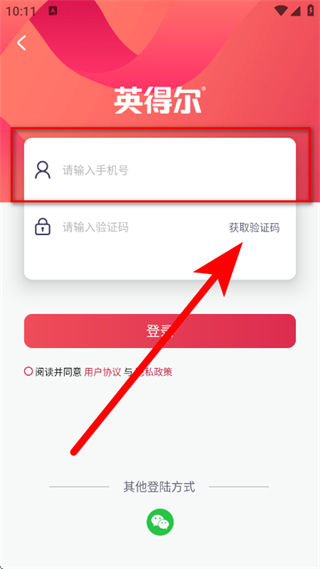 3、在登录页面,输入手机号后,点击获取验证码。