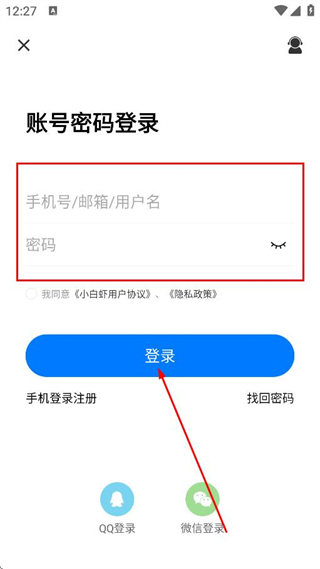 4、在输入手机号/邮箱/用户名和密码,点击登录,完成登录操作。