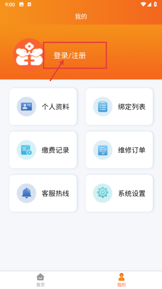 2、在个人中心页面,点击登录/注册区域,进入登录注册页面。