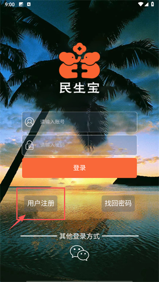 3、在登录注册页面,点击用户注册选项,进入民生宝APP注册页面。