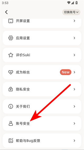 2、在设置页面中,点击账号安全选项,进入账号安全页面。