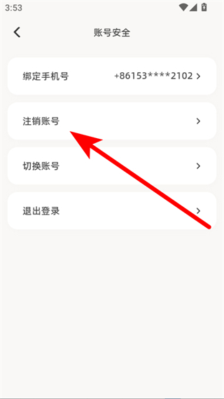 3、在账号安全页面,点击注销账号选项,进入注销账号页面。