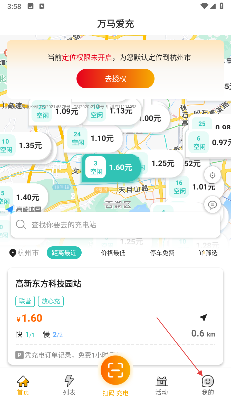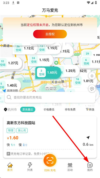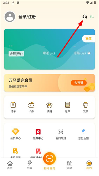1、在万马爱充app首页,点击右下角我的按钮,进入个人页面。