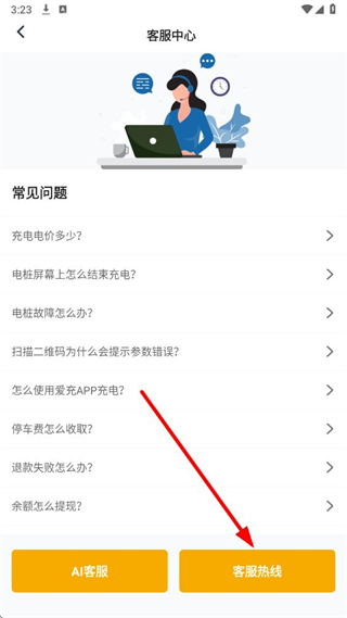3、在客服中心页面,点击右下方的客服热线按钮。