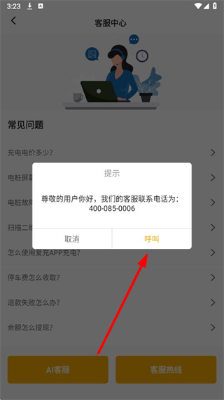 4、在弹出的提示框中,点击呼叫即可拨打客服热线即可联系客服。