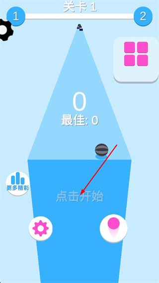 1、打开球球急速躲避游戏,在关卡1界面点击点击开始进入游戏。