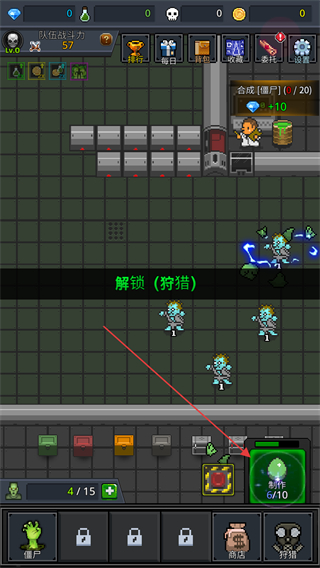 1、解锁狩猎功能,获取僵尸资源,积累低等级僵尸。