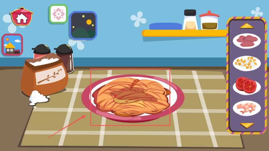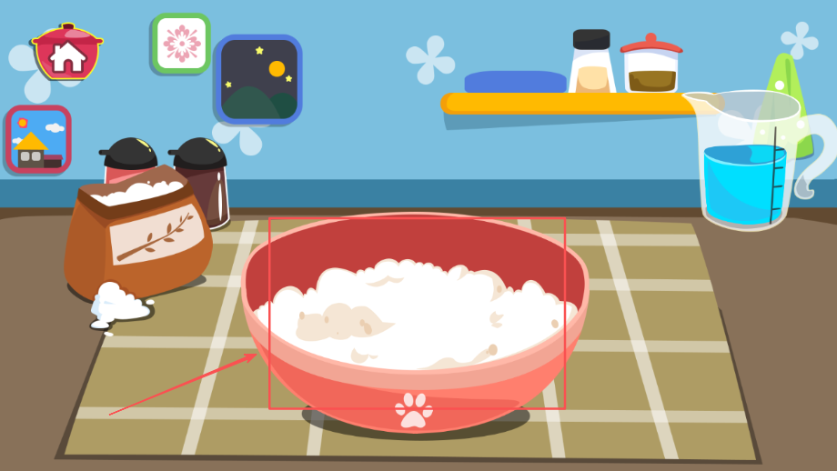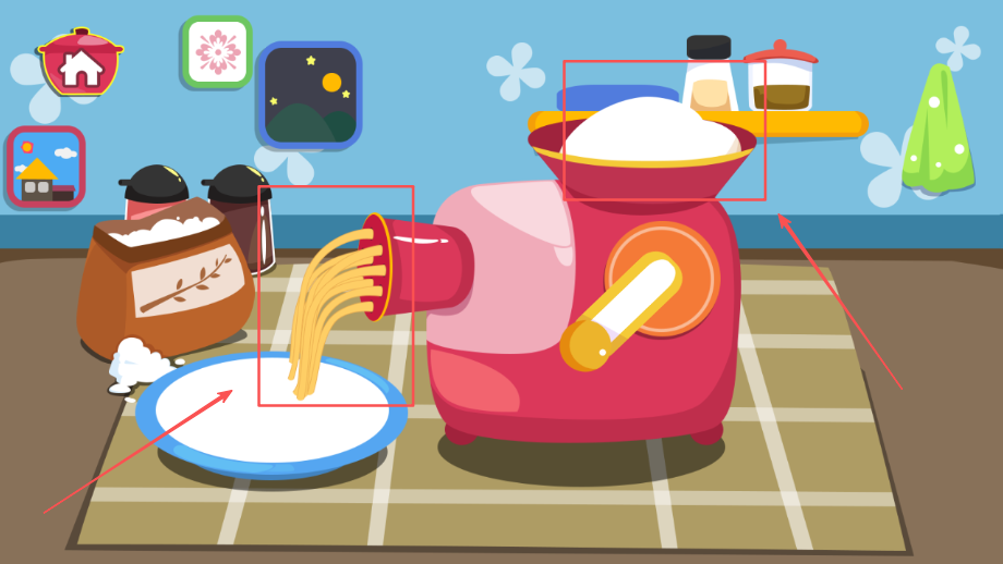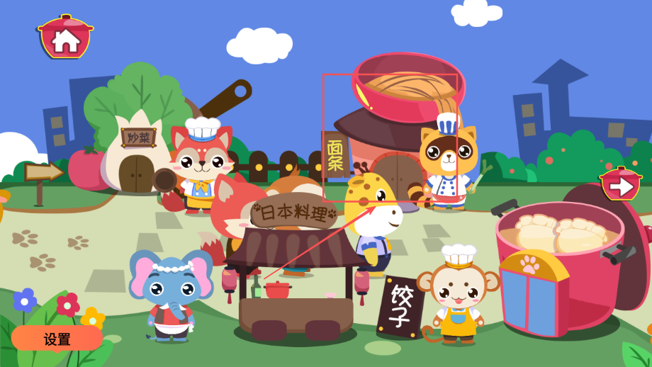 1、场景设计贴近真实厨房环境布局,用具和食材造型可爱生动,充分激发孩子探索兴趣和好奇心,培养观察能力。