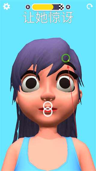 1、根据关卡要求让她惊讶,依次调整人物的眼部、眉部、唇部等部位,使其呈现惊讶的表情。