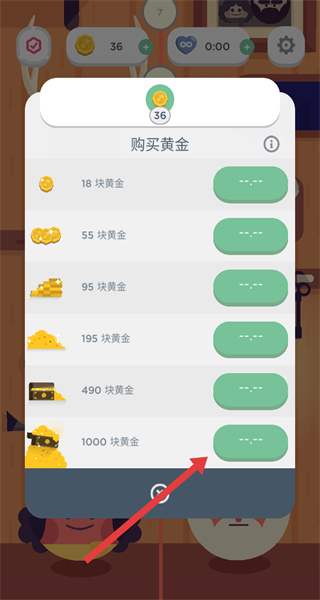 3、在购买黄金界面,选择需要购买的金币数量如1000金币,点击对应的按钮。
