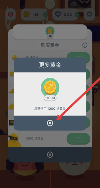 4、获得金币后,点击关闭按钮,可以重复次操作获得金币。
