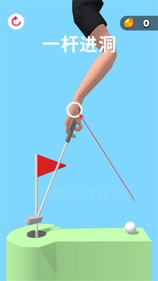 2、挥杆击打高尔夫球,使其向洞口方向运动。