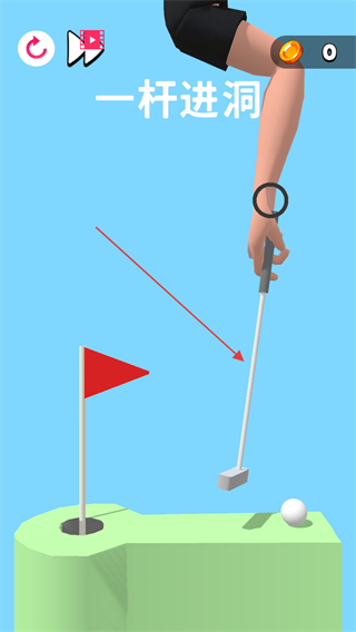 3、精准击球,让球落入洞中,完成一杆进洞挑战。