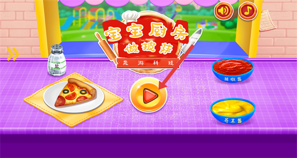 1、打开“宝宝厨房做披萨”游戏,点击中间的播放按钮进入游戏。