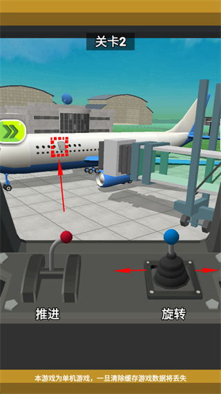 1、操作推进杆控制设备移动,操作旋转杆调整设备方向,使设备对准飞机指定区域完成操作。