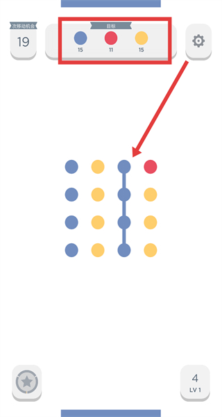 3、在关卡中,连接相同颜色的色块进行消除,达成该关卡指定目标。