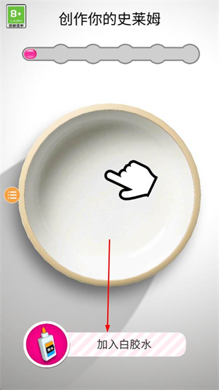 1、在“创作你的史莱姆”界面,点击加入白胶水,添加制作史莱姆的基础材料。